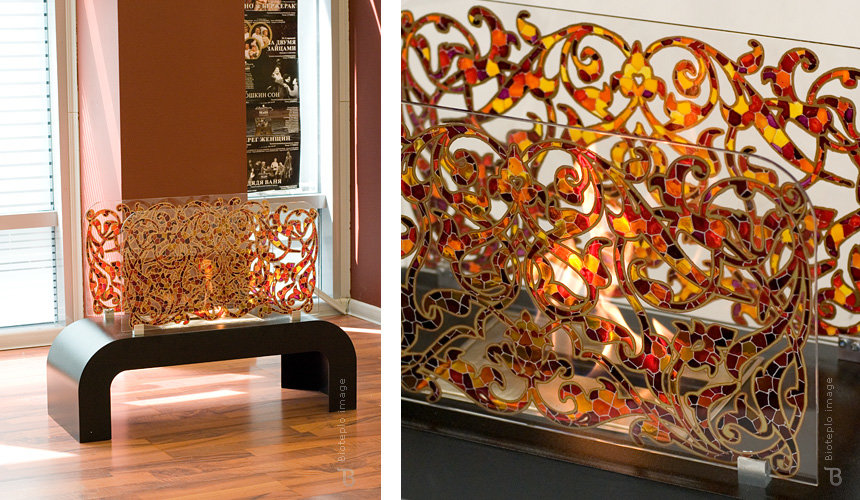 Витражное стекло для напольных каминов компании Bioteplo.