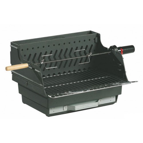 Прочность, зольный ящик, регулируемая по высоте решетка для жарения, несколько положений для вертела, чугунная колосниковая решетка поддерживает древесный уголь, при работе в режиме жаровни древесный уголь нагревает излучением и предупреждает воспламенение жиров, пригоден для жесткой заделки в фундаментные плиты очагов.