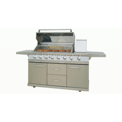 Стильное барбекю HERGOM CB6 с корпусом из нержавеющей стали и алюминия, термометр встроен в крышку. Работает на природном газе.