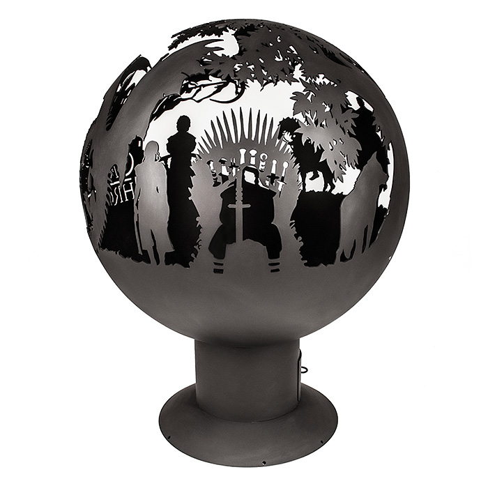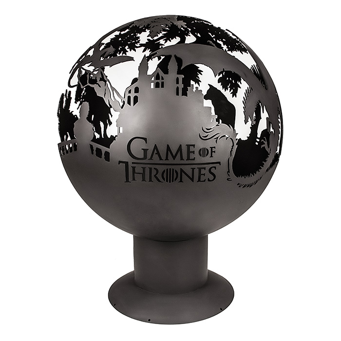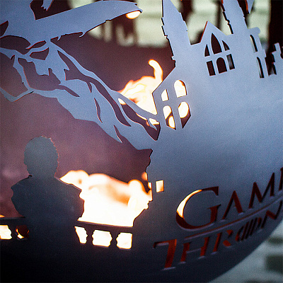 Уличный очаг Игра престолов (Game of Thrones) Firecup как нельзя лучше подойдет для истинных поклонников всемирно известного сериала. Конструкция выполнена в виде иллюстраций по мотивам сериала. Очаг сделан руками профессионального мастера и отлично вписывается в любое окружение, привлекая к себе внимание.