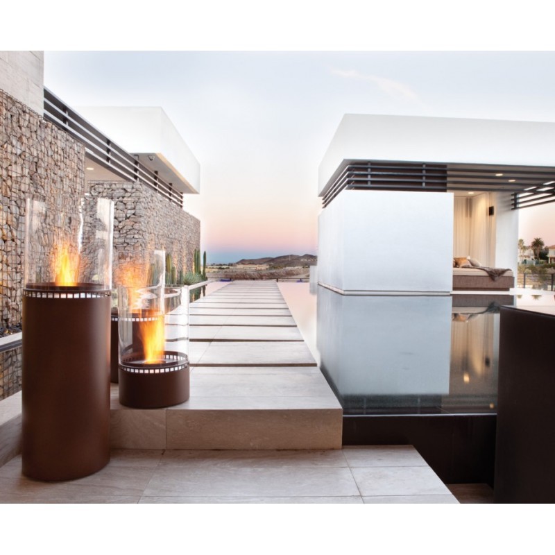 Необычную цилиндрическую конструкцию и модный дизайн в стиле минимализма имеет портативный биокамин ECOSMART FIRE Lighthouse 150 Black/CoreTen. Оригинальная форма изделия дает возможность наблюдать за танцующим пламенем со всех сторон.