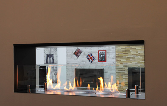 BKBF-B — встраиваемый двусторонний биокамин, спроектированный для разделения помещений.