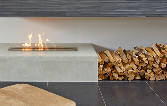 Неотъемлемой частью декора биокамина является поленница из натуральных поленьев.