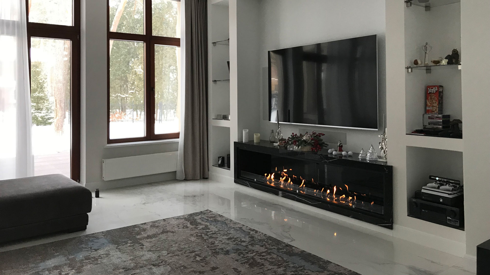 Автоматический биокамин GlammFire Glammbox 2400 EvoPlus - очень удобное решение для встраивания в нишу. Можно добавить любой портал или лаконичную контурную рамку.