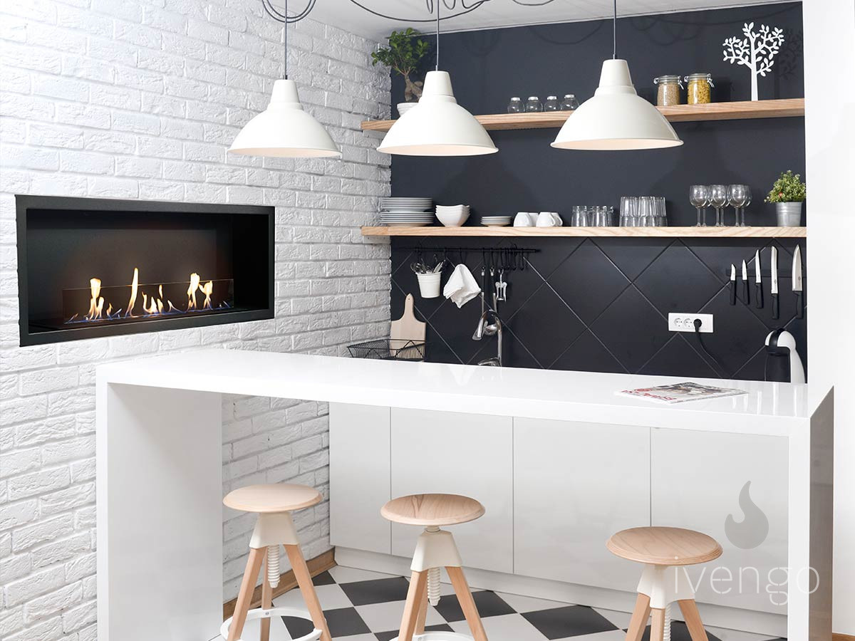Встраиваемый биокамин Ivengo Slim 1800x300x400 мм – одна из наиболее популярных моделей. Его можно органично вписать в любой интерьерный стиль – от классики до футуризма.