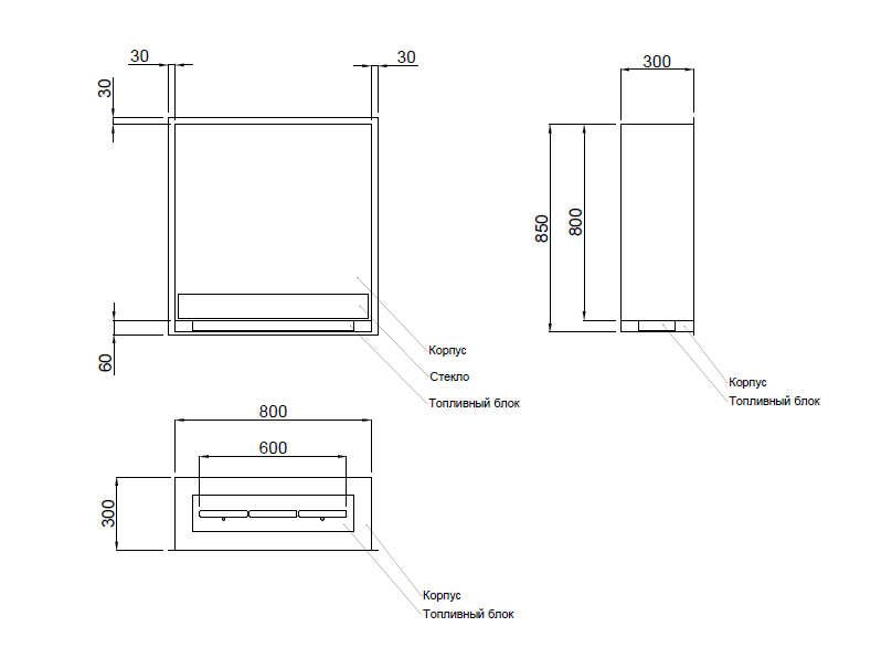 - Габаритные размеры ШxГxВ, (мм): 800x300x850