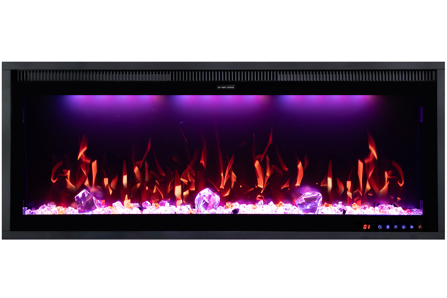 - Украшения: Очаг комплектуется кристаллами трех видов — прозрачными, черными и оранжевыми, которые красиво переливаются в свете подсветки, создавая эффект бриллиантового свечения.