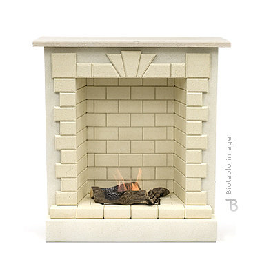 Модель выполнена кладкой из небольших по размеру камней шероховатой текстуры. Камни изготавливается из специально обработанного материала природного происхождения, обладающего высокими теплоизоляционными свойствами и огнеупорными показателями — вермикулита.