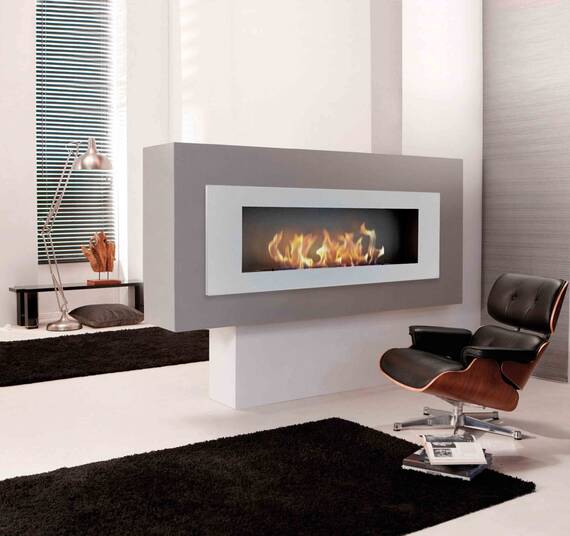 Zefire Elliot 1200 белый со стемалитом – лаконичная и стильная модель встраиваемого настенного биокамина, которая будет одинаково удачно смотреться в современном и классическом интерьере. Такой биокамин не занимает в помещении лишнего пространства, потому подойдет даже для небольших площадей. Его монтаж не требует устройства дымохода или вытяжки и может выполняться без специальных разрешений.