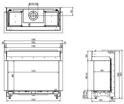 При мощности оборудования для отопления жилья более 3 кВт/ч, необходимо сделать дымоотвод из стали или чугуна. Внешнюю часть дымохода требуется прикрыть минватой и закрыть специальным чехлом. Встраиваемые газовые камины с небольшой мощностью, приспособлены удалять продукты горения при помощи вентиляции. Для безопасности, в помещении, где установлен камин, в обязательном порядке должны быть датчики неполного сгорания пропана и сигнализационная система. У газовых каминов для дачи без дымохода, камера сгорания – закрытого типа. Такие камины работают по принципу задействования электроэнергии для корректной работы автоматической системы и вентилятора.