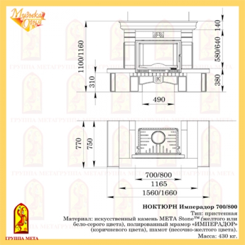 Каминная облицовка Мета Музыка Огня Ноктюрн Имперадор 700