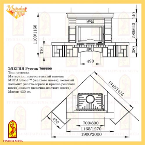 Стоит ли покупать биокамин Каминная облицовка Мета Музыка Огня Элегия Рустик 800