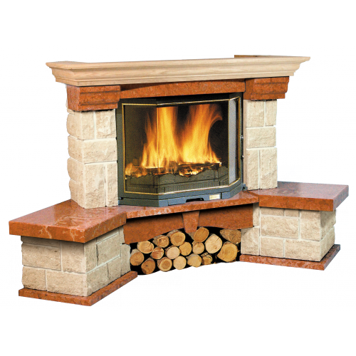 Каминная облицовка польского производства Bella Italia Akropol представлена колоритным сочетанием натурального камня - светлого колотого и насыщенного коричнево-красного полированного мрамора. Благодаря пристенному и угловому вариантам исполнения облицовка может гармонировать со всевозможными дизайнерскими фантазиями, воплощенными в интерьере кантри, и выделит оригинальные эстетические качества владельца дома.