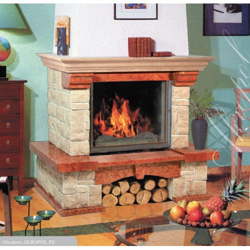 Каминная облицовка польского производства Bella Italia Akropol представлена колоритным сочетанием натурального камня - светлого колотого и насыщенного коричнево-красного полированного мрамора. Благодаря пристенному и угловому вариантам исполнения облицовка может гармонировать со всевозможными дизайнерскими фантазиями, воплощенными в интерьере кантри, и выделит оригинальные эстетические качества владельца дома.