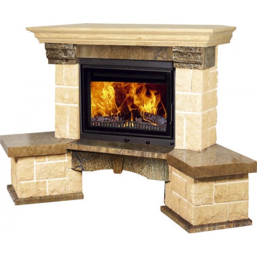 Облицовка Bella Italia (Польша) предназначена для декоративной отделки каминной топки. Облицовка изготовлена из песчаника и полированного мрамора Rayforest Braun (оттенки светло-коричневого с тёмными прожилками). Балка изготовлена из массива дуба. Подходящие топки серии 700 с прямым стеклом. Облицовка в пристенном или угловом исполнении.