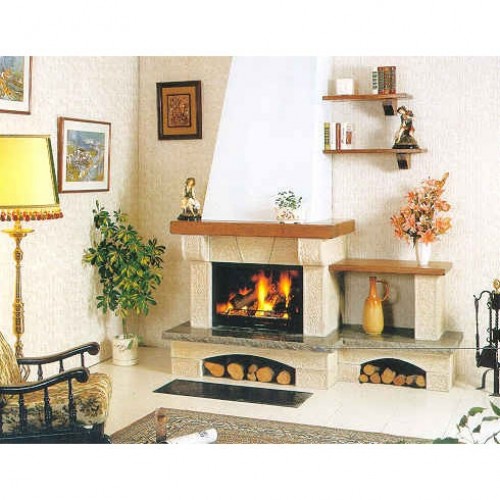По желанию клиента камин может быть дополнен боковой дровницей.