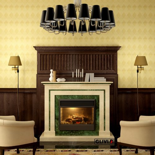 - Камин выполнен из полированного мрамора Crema Marfil, Verde Guatemala.