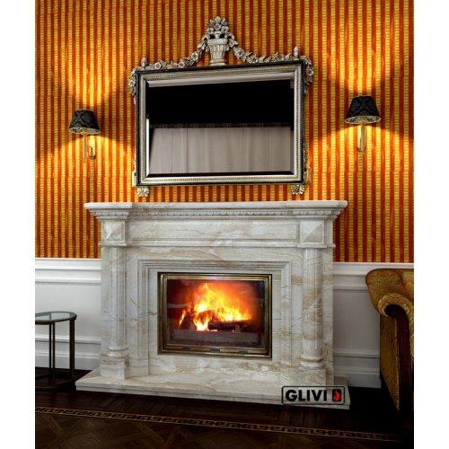 - Камин выполнен из полированного мрамора Breccia Sardo.