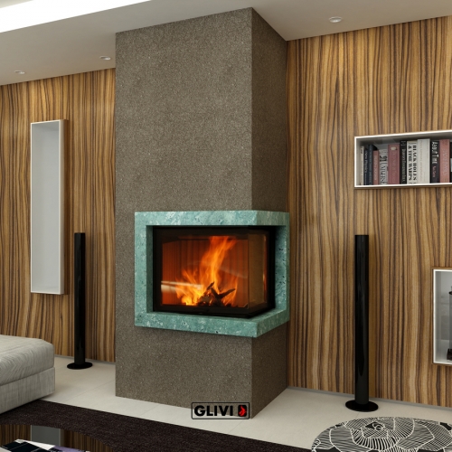 - Камин выполнен из полированного мрамора Verde Guatemala.