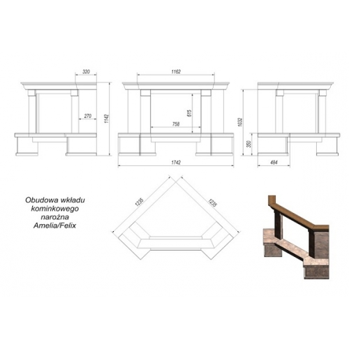 Облицовка Rimini угловая – покупая топки Amelia или Felix, человек сталкивается с вопросом: как ее украсить? И тут на помощь приходит польская фирма Kratki с готовыми вариантами угловых  облицовок. Облицовка Rimini угловая  состоит из двух видов мрамора BRECCIA SARDA (Италия) и EMPERADOR BROWN (Испания), балка выполнена из сосны. Как правило, такие облицовки не требуют фундамента, просты в обслуживании и будут долгое время радовать и согревать. Хочется отметить - что эти облицовки подходят под топки Oliwia/PW, Wiktor/PW, Amelia/PW, Felix/PW с теплообменником (водяным контуром).