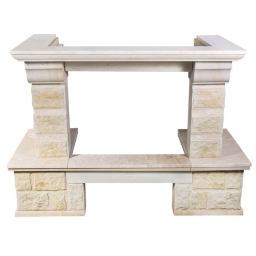 - Материал: колотый песчаник, золотистый или белый цвет, полки и балка - мрамор Best CreamПодходящие топки шириной „700 мм” с прямым стеклом