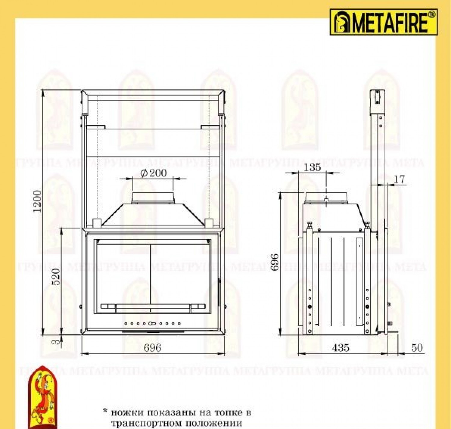 Топки MetaFire™ изготовлены из высококачественной стали. Топочная камера футерована шамотными огнеупорными плитами. Для уплотнения разъёмных элементов топки, используется термостойкий шнур. Топки укомплектованы специальными термостойкими стёклами (стеклокерамикой Neoceram N-O производства Японии). Для удобства установки все топки MetaFire™ регулируются по высоте.