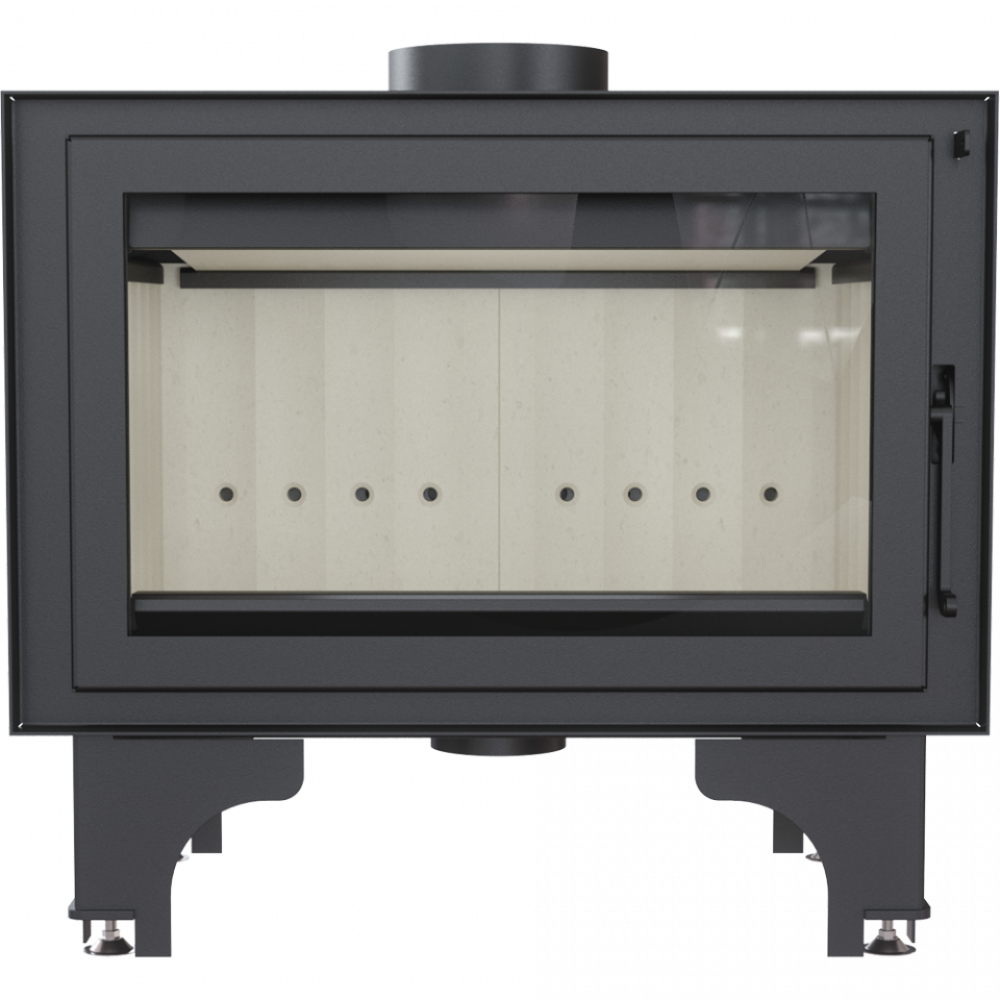 Увеличение температуры в камере сгорания способствует футеровка керамическим материалом, а большая площадь поверхности топки и высокий дымосборник отдают больше тепла в помещение. Для облегчения обслуживания предусмотрен съемный колосник и выдвижной ящик для пепла/золы.