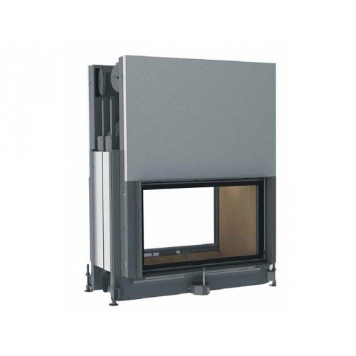 Двухсторонняя каминная топка с прямым стеклом. Топочная камера футерована шамотом. Подъёмный механизм двери (система Easy-Lift) с одной стороны. С другой стороны дверца откидывается для чистки. Возможен вариант топки с подъёмным механизмом с двух сторон (по запросу). Ширина дверки 850 мм. Высота дверки 484 мм. Возможно подключение воздуха из-вне.
