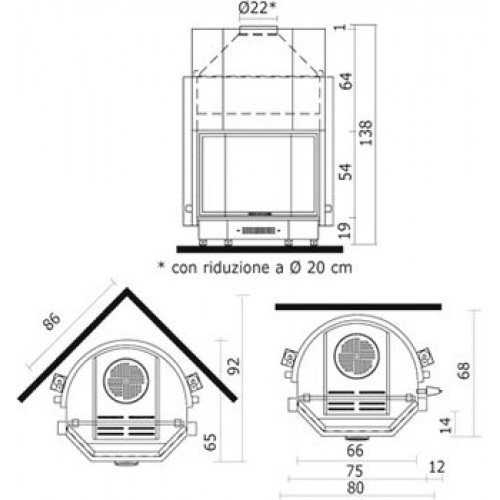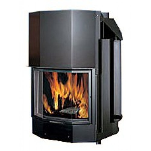 Камин с водяным отоплением из толстой стали, способный производить горячую воду, поступающую в контур системы отопления и на радиаторы, а также производить горячую техническую воду. Дверца призматической формы с подъемом вверх. Камин может устанавливаться как пристенный или как фронтальный.
