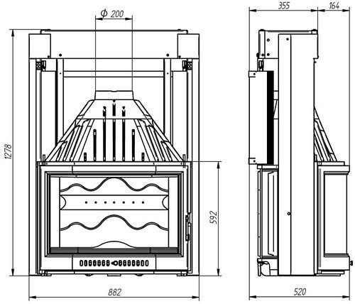 Данная большая каминная топка гильотинного типа имеет следующие опции: