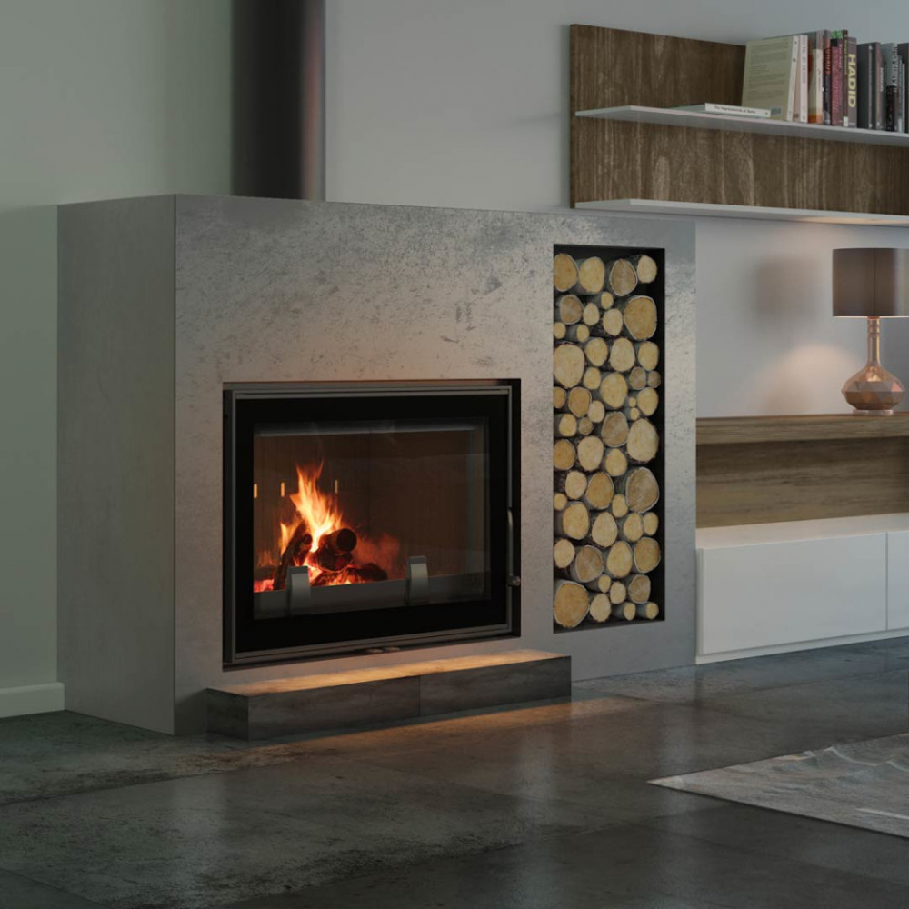 - Декоративная стеклянная панель типа glass, которая выдерживает температуру до 660 °C и предоставляет камину современного и элегантного вида, оптически увеличивает переднюю часть топки.