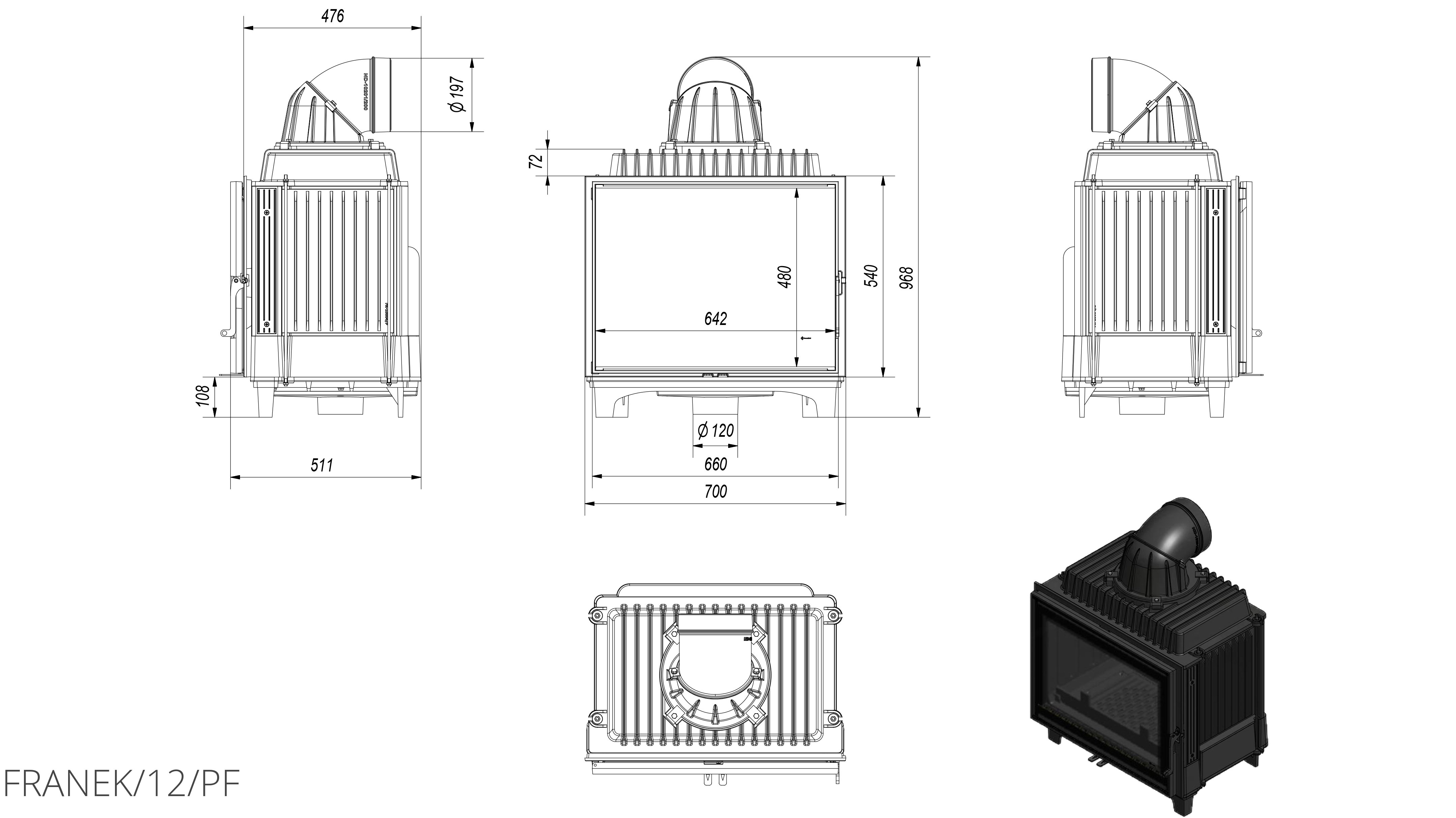 Чугунная каминная топка Kratki Franek/12 мощностью 12 кВт с декорированным стеклом. С высоким тепловым КПД с характерным расположением радиаторов, которые увеличивают нагревательную поверхность топки, то есть участок, где тепло передается окружающей среде.