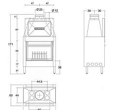 Термостойкость стекла до 800 гр Ц., в зависимости от модели топки, возможно применение двухстороннего или самоочищающегося стекла. Дымовая труба проходящая через длинный шибер для дополнительного теплого воздуха из газов - экономия на каждый день