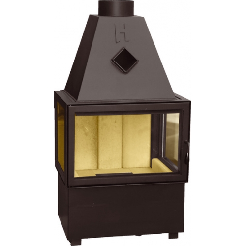 Наблюдать за пылающем огнем можно через три смотровых стекла, что позволяет установить топку посередине каминного зала. Стекла разделены, боковые стекла не открываются. Дверка открывается в бок, рамка дверки может быть черная (стандарт) или позолоченной, латунной или хромированной. Жаропрочные стекла на керамической основе спокойно выдерживают рабочую температуру нагрева.