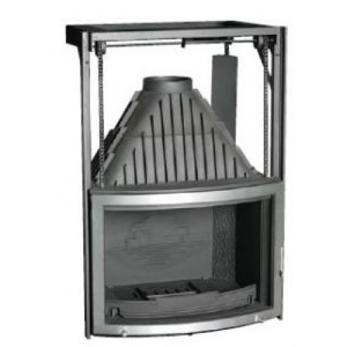 Панорамная форма стекла, выдвижной зольный ящик. Вертикальное и боковое открывание, система подъема двери при помощи контргруза. Перелеяя рамка декорирована сталью инокс.