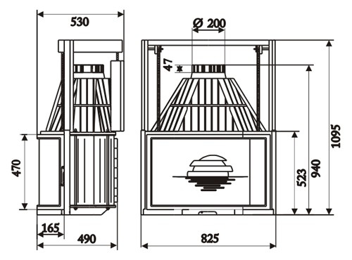 Каминная топка Laudel 850 Relevable призма правосторонняя (призматик контргруз)