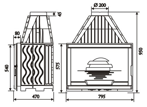 | Диаметр дымохода (мм) | 200 |