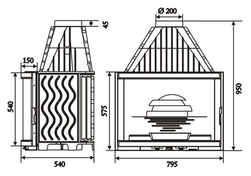 | Диаметр дымохода (мм) | 200 |