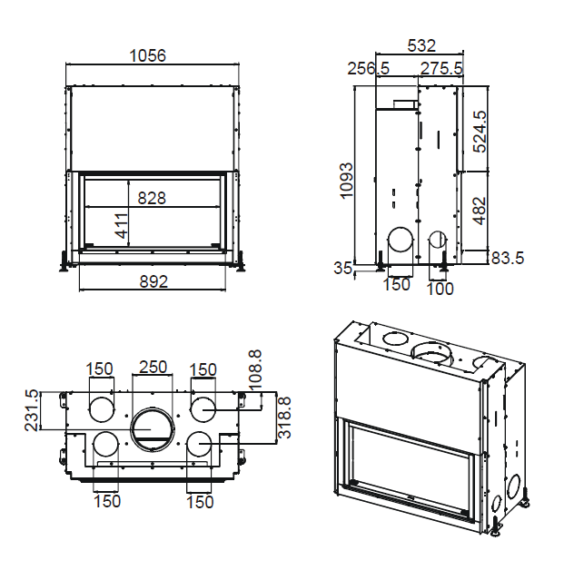 - Диаметр дымохода, (мм) 250