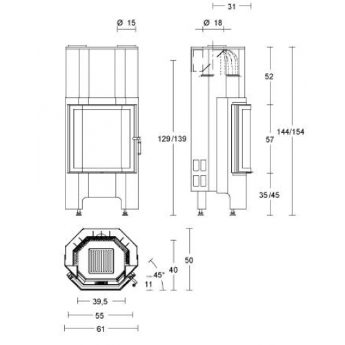 Выход дымохода:  Верхний; для моделей 510-555 верхний или задний