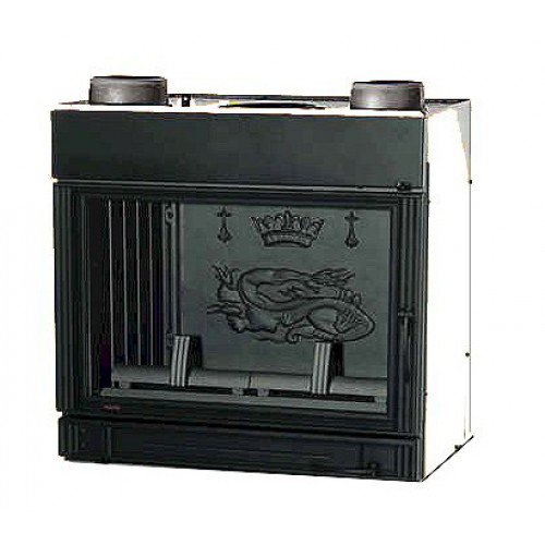 Каминная топка, изготовленная из толстого чугуна. Дверца с керамическим стеклом. Дверца открывается в сторону. Система очистки стекла.