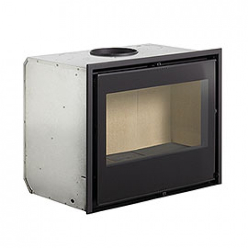 Горизонтальная вставка со стальным корпусом. Стенки очага из специального материала - вермикулита. Дверь открывается в обе стороны - влево и вправо, что позволяет встраивать камеру в любой портал. Данная модель топки оборудована выдвижным зольником.