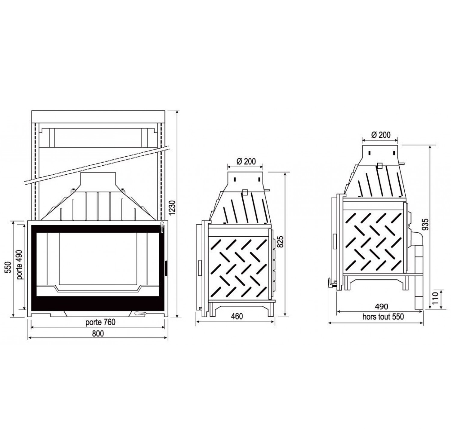 Каминная топка Seguin confort visio 8 plus - black line (с серыми кирпичами и двойной подачей воздуха)