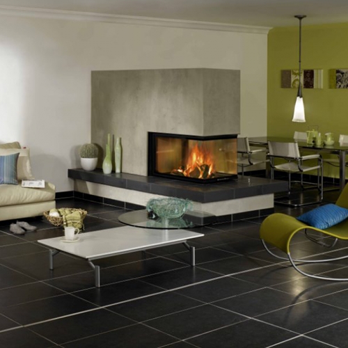 В топке имеется система длительного горения и система чистого стекла. Имеется возможность для подвода дополнительного воздуха из других помещений или улицы для процесса горения, что сводит к минимуму выжигание кислорода в помещении во время работы камина.