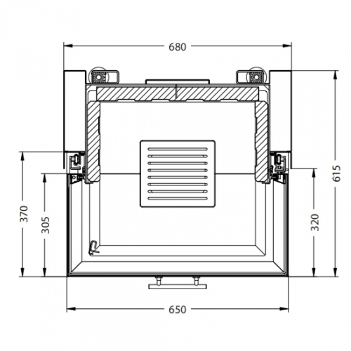 В топке имеется система длительного горения и система чистого стекла. Имеется возможность для подвода дополнительного воздуха из других помещений или улицы для процесса горения, что сводит к минимуму выжигание кислорода в помещении во время работы камина.
