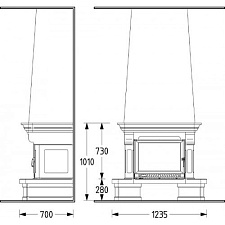 Технические характеристики:- Эффективность 15 KWЭффективность с теплогенератором 19 KWШирина 68 cmВес 135 kgКПД 76%КПД (с теплогенератором) 82%Древесины 40 cm