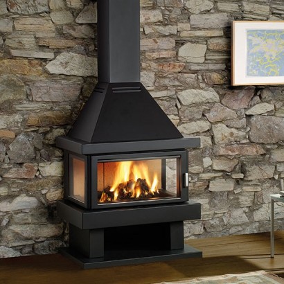 Фронтальный (пристенный) металлический камин. Дрова: 40 см.