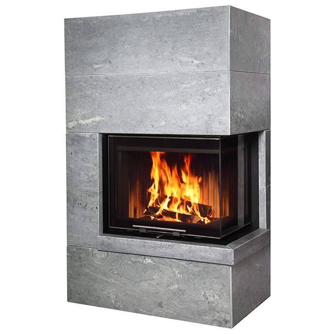 Угловой интерьерный камин DEKO в основном рассчитан на нерегулярное использование, когда главным является создание уютной атмосферы живого огня. Дрова в камине сгорают медленно, предоставляя отличную возможность предаться неспешным размышлениям, наблюдая за игрой пламени сквозь большую стеклянную дверцу, оснащенную подъемным механизмом.