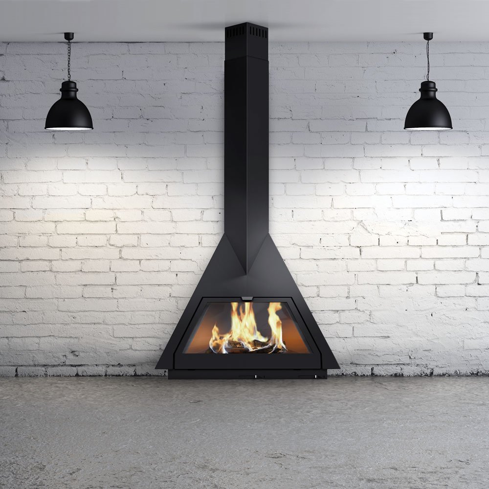Своим новаторским дизайном и конструкцией эта модель камина открывает безграничные возможности по декорированию, оформлению помещений, по созданию ультрасовременных интерьеров. Например, модель Foxi будет прекрасно смотреться в современных галереях, арт-центрах, студиях, передовых офисах и кабинетах, ресторанах, любых творческих и креативных пространствах или помещениях, которые нужно таковыми сделать. Оригинальная треугольная форма гармонично сочетается со стильным черным цветом облицовки камина, вытянутым изящным дымоходом и просторным обзорным стеклом топки, открывающим завораживающий вид на игру и танец пламени. Большим преимуществом модели Foxi выступает возможность приобретения к нему специального набора из нержавеющей стали для приготовления пищи.