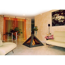 Островной камин также очень удачен тем, что имеет много положительных качеств. Закрытая топка камина JC Bordelet Julietta 985 centrale vitree держи пламя изолированно, тем самым обеспечивает полную безопасность, защищенность пространства комнаты от пламени.
